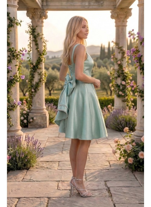 O rochie verde statement, realizată din tafta cu căptușeală milanez, care pune în valoare silueta prin închiderea reglabilă tip corset și cupe inserate pentru susținere perfectă.
