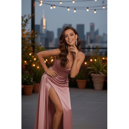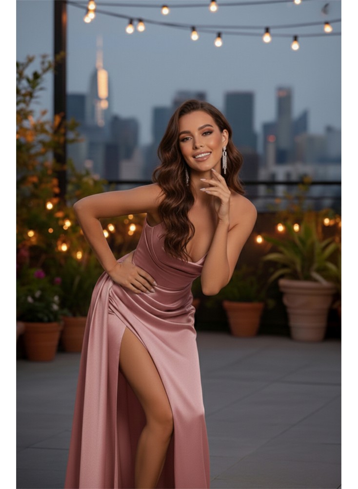 O rochie neagra statement, realizată din tafta cu căptușeală milanez, care pune în valoare silueta prin închiderea reglabilă tip corset și cupe inserate pentru susținere perfectă.