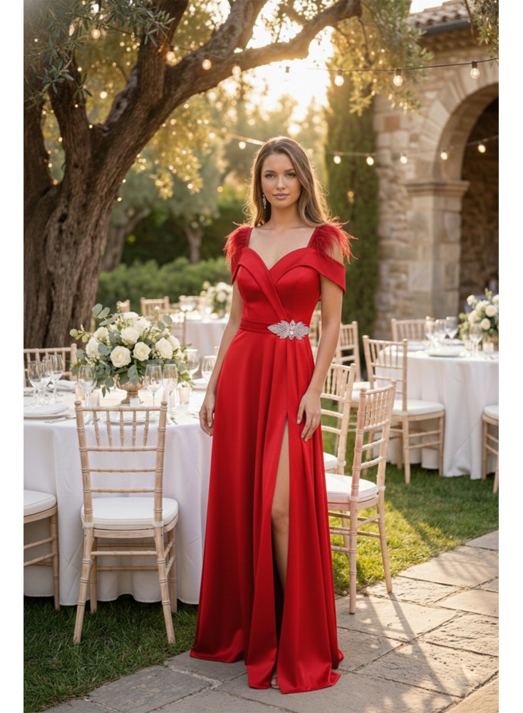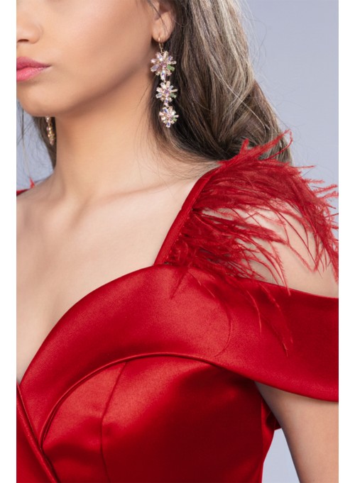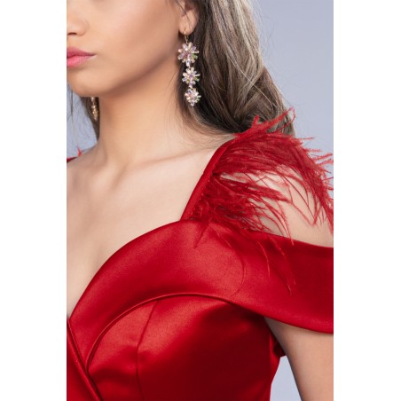 Rochia Ivona este unul dintre cele mai îndrăgite modele, apreciată pentru designul feminin și detaliile spectaculoase. Realizată din tafta, cu căptușeală din milanez și accente elegante din pene, acest model oferă susținere prin cupe integrate și un plus de versatilitate datorită cordonului detașabil.